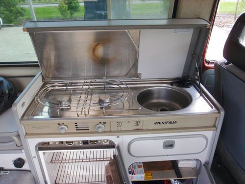 This is still a very reliable (maybe more that originally) VW Vanagon that sleeps four, with double beds both down and in the pop top, a two burner propane stove, sink (new water pump) and frig (never have tried it) There are curtains all around, mosquito netting for the rear hatch, tons of storage, front seats reverse-great family camper especially with 4 bike capability and canoe on top.