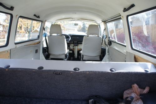 Here we have a clean, original, un-restored, un-molested 1978 Bus / Transporter / kombi. Excellent Runner and Driver. Brakes recently done, Newer tires, Mag wheels. Electrical is in good shape, All running lights, marker lights, headlights and tai-llights all function properly. 2 liter fuel injected Motor has good power and feels peppy, 55mph is a breeze, rides smooth, tracks straight. brakes stop great, evenly, and quietly. Interior is in nice condition and original upholstery on seats. Headliner is excellent! -No Middle Seat Included- (replacement available if desired) Original Jack, spare tire cover and floor mats interior panels are present and need a little tlc. Floors, all over are clean and not rusty. Slider door slides and latches freely, easily, and nicely. Dent in slider door, scratches and paint imperfections in slider door, small dent under driver side headlight, windshield is cracked in a few places and the bus needs its emblem. Overall all the pictures will speak for themselves. Great Bus!