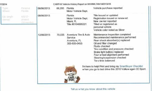 2010 Cc Sport Carfax Certified Excellent Condition Spotless Florida Beauty on 2040-cars