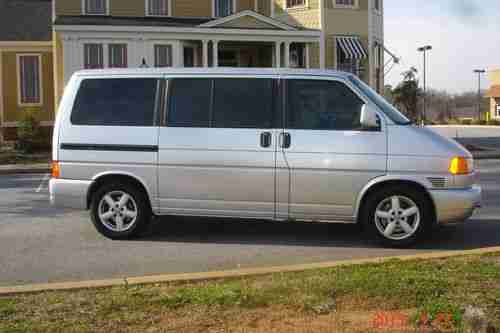 2002 VOLKSWAGEN EUROVAN GLS V-6 AUTOMATIC 62700 ORIGINAL MILES SILVER/GREY CLOTH INTERIOR ORIGINAL PAINT IN GREAT CONDITION SMALL DENT ON REAR HATCH DOOR (NOTE PHOTOS) CLOTH INTERIOR IN EXCELLENT CONDITION NO STAINS,NON-SMOKER,NO RIPS OR TEARS. HEADLINER HAS A SMALL SAGGING SPOT IN REAR CENTER, HANDLE ON MAP POUCH ON DRIVERS DOOR IS BROKEN. VAN HAS CLEAR TITLE - CAR-FAX STATES THAT IN 2004 VW PURCHASED VAN BACK FROM ORIGINAL OWNERS I CONTACTED VW DIRECT AND WAS TOLD THEY HAD NO RECORD OF THE PROBLEM. I HAVE TAKEN THE VAN TO THE LOCAL VW DEALER FOR INSPECTION AND THEY COULD NOT FIND ANY PROBLEMS. EUROVAN RUNS AND DRIVES GREAT EVERYTHING WORKS ,ENGINE RUNS STRONG AND SMOOTH, TRANSMISSION SHIFTS LIKE IT SHOULD I HAVE NO ISSUES WITH ANYTHING ABOUT THE PROPER OPERATIONS. WOULD FEEL COMFORTABLE DRIVING ANYWHERE!! ONLY ISSUES ARE THE COSMETIC ITEMS I LISTED ABOVE. THERE IS NO RUST ON VEHICLE. IT WAS PURCHASED NEW IN HAWAII AND IS NOW IN SOUTH CAROLINA- NO RUST!! VAN IS AVAILABLE FOR INSPECTION AT ANYTIME DURING AUCTION FEEL FREE TO CALL AT ANYTIME 864 933 2881 STEVE - THANK YOU! BID WITH CONFIDENCE!!