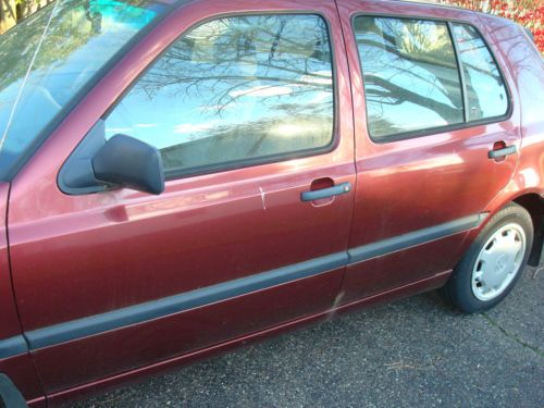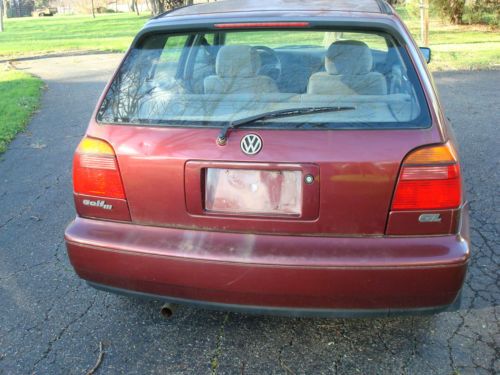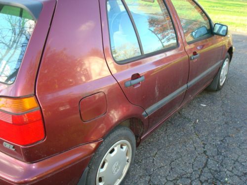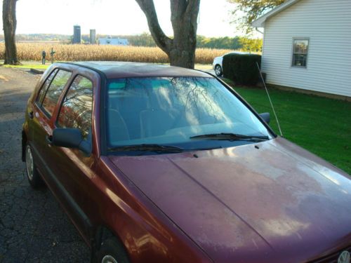 1994 Volkswagen Golf GL 4 door Hatchback. This vehicle has the 5 speed manual transmission and the 2.0 l gas 4 cylinder engine. The car starts and drives as it should. The clutch works as it should and the car steers solid on the road with no pulling from side to side. The brakes function as they should. The interior is reasonably clean and is free of rips and tears. This is a good economical car. It has some defects in the paint as you can see from the clear coat peeling, there is some minor rust around the back window lower left and on the driver side rear door. The car is not some rust bucket by any means but is beginning to show some wear after almost 20 years. The glove box latch works but the handle part is broken, it will still open and latch, just a little more difficult to do. I am sure a new latch could be purchased or a junk yard could have a replacement. The rubber boot around the shifter is coming loose but does not seem to affect the shifting in any way. The vehicle has a clear Ohio title and if the car is purchased with cash the vehicle and title will be released immediately. If the vehicle is payed with a check then the funds must clear the bank before the title or car will be released. The funds will be payed in US dollars only. The vehicle is being sold as is with no warranty expressed or implied. Any questions please feel free to ask and thanks for looking.