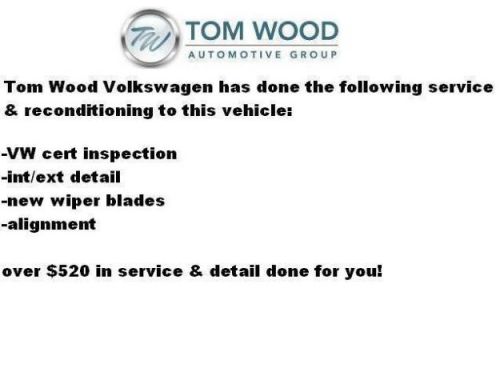 * BLUETOOTH * ALLOY WHEELS * CONVENIENCE PACKAGE The Volkswagen World Auto CPO program has been selected by IntelliChoice for 5 years in a row as the most comprehensive certified program on the market. To meet WorldAuto standards, we set the bar a little higher. Every certified pre-owned Volkswagen is subject to a 112-point inspection. A Volkswagen technician goes through each car with a fine-tooth comb. And if they find anything wrong, they'll repair or replace it. And if anything does go wrong (because you know, sometimes things happen), you've also got the security of two years of 24-hour Roadside Assistance. That'll cover towing to your nearest VW dealer, jump-starting or even refueling your gas tank.You'll also receive a CARFAX Vehicle History Report, so you'll know your car's history inside and out. We'll even throw in three months of complimentary SiriusXM satellite service. In short, At Tom Wood Volkswagen we will do everything we can to get you that new car smell, without that new car price. Tom Wood Volkswagen offers a huge selection of pre-owned vehicles from every make and model. Be sure to ask about our Tom Wood Certified pre-owned with a 12 month/12,000 mile warranty.