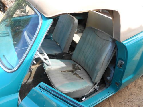 Calif. car originally, here in Az. since. All bondo and paint removed, some damaged sheet metal replaced, no rust found, except small amount on rear floor pans(see photos). This is basically a low miles car amazingly, 78K, I believe to be orig. I worked for VW, as a mechanic, when this car was brand new, I've had many since, just love to work on them. The color is an old VW color, I do remember. Green with a new Haatz cloth top and matching headliner. I will send along paint left over for touch-up, and to paint rear licence plate light. Not sure of mileage on engine, but has good compression and runs strong, 1600cc and 12 volt for lighting. I do notice a few oil leaks, but not constant, usually a few drops after a drive. I believe the trans to be original and shifts well, could use axel boot on left side. Bumpers there, will need rechrome some day, but usable as is. Rear tires OK, but front will need replacing, spare included with jack & lug wrench. The interior is still orig. see photos, especially drivers seat that needs bottom doing. Door panels in pieces. With new interior this would be a great driver, Wipers still 6volt, so will need a voltage drop to use as is, or put a 12volt motor in. Jack pointrs solid, and usable. The master cyl. is new with new cups in all wheel cyl. Hand brake works. Original wiring still there and is usable as is. Still needs some fix -up, here and there, but a good investiment at this price. You can reach me by asking a question, and I will respond quickly. I do have a video on youtube of car running check it out URL http://youtu.be/JjsECFm73eg I'll try to down load this to this posting, but don't know if it will work. I have many more photos to send if you so desire, let me know. Thanks, Alex PS, any thing missing in video, like door trim, inside and outside is included, including rubber, orig floor mats etc, etc, just ask if in doubt