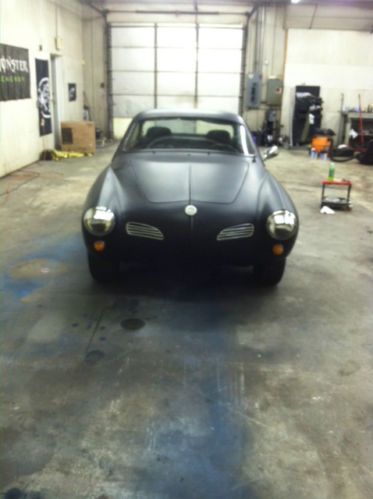 We have for sale a 1969 VW Karmann Ghia. This Ghia is rust free, which is rare I am told, the motor and transmission are completely rebuilt with 200 or less miles on it. The carb is new, and tuned correctly. The motor is the bigger CC motor and has new exhaust also. The car runs and drives good, stops good, and looks good. The interior of the car is all most perfect, carpet and seats are great! The trim on the dash is peeling alittle and the rear panel by the rear window has sun damage. The chrome on the car is good, but is missing the front bumper. The tires have good tread, and caps are in good condition. The car was red, now as you see its black with red highlights. This car was not painted tho, it was dipped, so if you dont like it peel it off, its that easy! We think it looks pretty cool like it is tho. If you have any questions please ask, I will get back to you as quickly as I can. There is a $500.00 deposit due within 3 days via paypal, and the rest in cash on pick up within 7 days, unless agreed upon prior to sale. The title is a clear ohio title.