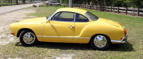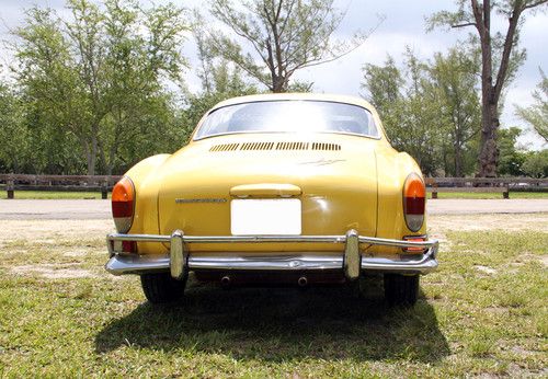 1970 Volkswagen Karmann Ghia // 2-door coupe // yellow exterior with black leather interior
