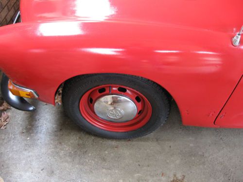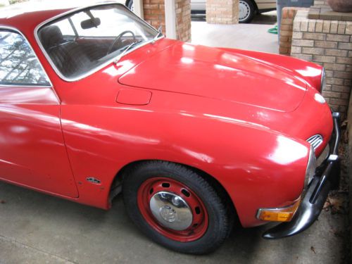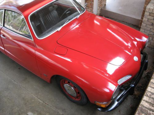 1971 VW KARMANN GHIA NO RESERVE AUCTION!!! Up for your bidding consideration is this 1971 Volkswagen Karmann Ghia in the red on black color combination. The engine is original and is the 1600 air cooled VW motor that it is mated to a 4 speed transmission. The engine has just had a top end complete rebuild including new rings, rod bearings, main bearings, new cam bearings, cam & lifters, new oil pump and it runs great! The engine restoration was performed by a former James Motors of Hot Springs Volkswagen mechanic from the 1970's. His love affair for VW has continued and this is how he spends his time in retirement. The car brakes well and drives nicely. The tires are old and for spirited driving will need to be replaced. The spare tire is brand new. The exterior is very dated and needs a new paint job. Originally a green car, it has an Earl Scheib type paint job from the 1970's It appears to be a very solid body free of problematic rust so the foundation is there for a quality paint job. Of course not everybody wants perfection and if driving a car from the Nixon/McGovern era without a restoration is your thing...then this little Ghia is good to go! The engine cover lid does not securely fasten and if you do opt for the paint job then this will have to be repaired as well. The interior is like the exterior... for perfection it will need to be completely restored. The pictures depict the 43 year old cabin well so the restoration will depend upon its new owner. This is a great car to restore or to drive, the choice is yours. The glass, the wheels, and the VW hub caps are fair to very good. The rear bumpers are quite nice and the front bumpers need some work. The side moldings are missing. The Italian design of the Karmann Ghia was the creation of Luigi Segre of Carrozzeria Ghia. The bodies were handbuilt by Karmann. The original owners manual and Volkswagen maintenance records are included in the sale. This little Ghia was originally sold on June 28, 1971 by Warden Volkswagen of Little Rock, AR to Fred Ball. Mr. Ball faithfully recorded his service at Warden up to 53521 miles. It was probably at this time that he parted ways with the VW. To restore/collect or to drive as-is this is a great opportunity to buy a vintage air cooled Karmann Ghia with this no reserve auction in place. Please e-mail me with any questions on the Ghia and I will quickly respond. Also a pre-purchase inspection is available most anytime... just e-mail for an appointment. Winning bidder is to pay in full within (3) three days of winning the auction. Cashiers check, bank-wire, personal check (must clear first), or cash in person are all acceptable methods for payment. If the winner wishes to use a transport company or a trailer for delivery I will be happy to be available to the driver to expedite a timely transfer. I will also keep the Karmann Ghia inside my enclosed garage for up to 30 days while shipping arrangements are being made.. The vehicle is being sold as is, where is with no warranty, expressed written or implied. Any descriptions or representations are for identification purposes only and are not to be construed as a warranty of any type. It is the responsiblity of the buyer to have satisfied himself/herself as to the condition of the vehicle.