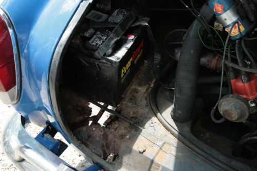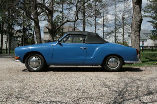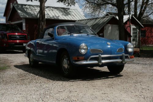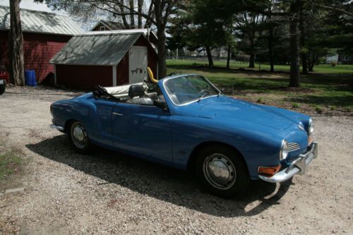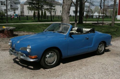 Up for bid is our 1971 Karmann Ghia convertible. Bought the car to drive back and forth to work with and drove it for about a year, parked it two years ago with all intentions to start restoration...obviously that never happened! The car ran and drove two years ago, at this point it will not stay running but will turn over. Transmission shifted fine and brakes were good when it was driving. As it sits right now, I think all it needs to get it back going is a good carb cleaning and a new gas tank (was told by a Volkswagen/Porsche tech that the tank was rusty and needed replacing). The previous owner did minimal work to the body, instead focusing on keeping it running and drivable. The body needs work, as detailed by the pictures. Lots of little dents but nothing major, rust bubbles in spots on the rear fenders but nothing major. Usual rust by the battery. Interior is in need of restoration, seat are drivable though you just sit a bit lower than usual because the springs are shot. Top is in great condition. Car is mostly all there and would make a great restoration project, she just needs someone with more time than I. Car comes with cover, a set of rotors and a replacement wood grain dash overlay. Buyer is responsible for a $500 deposit due 2 days after auction end, full payment required with 7 days or before vehicle is picked up for transit. Buyer responsible for pick up and shipping. Please let me know if you have any questions and I will do my best to answer them. Thanks for looking! Josh