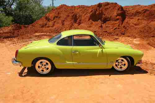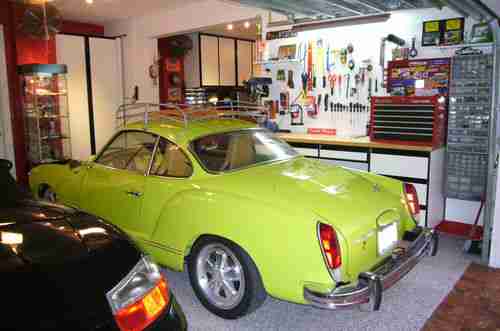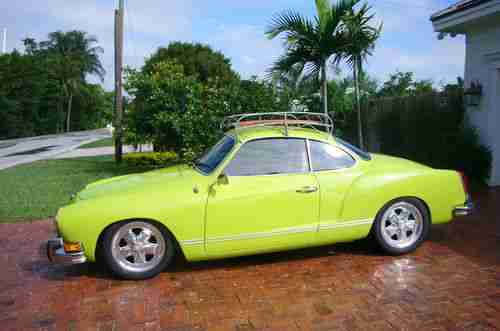 This Ghia was purchased from an estate sale from the original owner in Sacramento CA in 2005. It was then... and has always been rust free, no rust repair and no body damage ever. It was shipped to me in South Florida. I bought the Ghia to build it into what might have been if VW had determined to make the car perform at a level in keeping with its sporting design. All original panels refinished in the original color of Ravenna Green. The body was separated from the pan and every part of the car completely refurbed or replaced. Jake Raby of Aircooled technologies built a Type IV 2270 and matching 4 speed gearbox. He rates these engines dyno tested at 155hp /170lb/ft of torque. The stainless header exhaust sytem was purchased from Ahnendorp in Germany, the original exhaust manufacturer for the Porsche 356. An Oddysey AGM battery has been added since these photos. Needless to say this Ghia hustles. The brake system was upgraded with Porsche 944 calipers with Zimmerman cross drilled and vented rotors. polished Fuchs 16 X 6 wheels; including the spare. Porsche Carrera guages, Porsche Carrera seats. A period correct Blaupunkt stereo was fit with iPod/XM/Sirius capability. Full german weave carpet kit and new interior door panels, the dash is original and perfect. A period vintage Momo steering wheel completed the interior. This project was built without a budget and I realize the cost of the engine, tranny and exhaust were more than I will likely get as a sale price. But I have moved onto other projects and have too many cars... so this one will go. It is a spectacular Ghia and has won numerous first place trophies in local VW shows. Good luck bidding. Please ask questions before bidding, car is available for inspection before the auction ends.