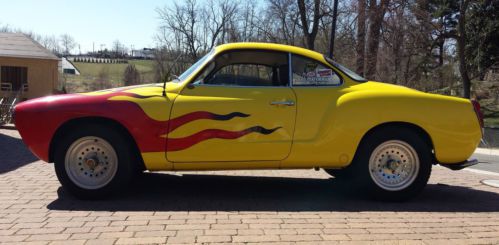 You are looking at a 1974 Karmann Ghia 2+2. This car was built by a local pro years ago who took very good care of the car. It has the original 1600 engine which starts right up and runs great. It has a tight 5 speed manual transmission and good clutch, the car shifts well. The suspension was modified on the car back in it's racing days and has a really nice high stance that you can see in the pictures. The body is in good condition, minimal rust, but there is a dent in the front of the car (refer to pictures). It has front disk brakes and power steering, one of the front brake pads could use replacement but it stops well. The car is drivable right now and runs comfortably at highway speeds. The car was previously tagged as a street rod.