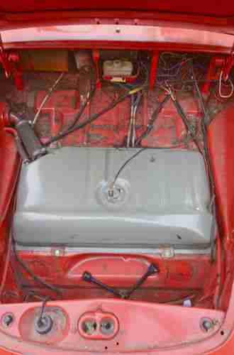 This is my fathers old project car that never got out of his garage. He purchased it in 93' from someone who had it sitting in their garage for fifteen years. Since then he has taken it out a half dozen times to work on it. The first thing he had done was the floor pans which were completely replaced professionally. His next project was the rocker panels were replaced. After that it has simply sat. The only time this thing would move was when I came over and took my kids around the block in it after giving it a jump. Currently it runs rough, but with a tuneup, I am sure it would be fine. The convertible top outside layer needs to be replaced and my father has a new one waiting for installation. The interior needs new rugs and he removed the plastic wood dash to replace it with a new still waiting to be installed. The engine does not leak oil and it shifts through the gears pretty well. The clutch still has a lot there. The bad - there's some bondo on the drivers side quarter panel and it is cracked but no rust is showing. This has been this way since he bought it. So my guess is the bondo was due to a minor hit rather than rust. The drivers side front fender appears from the inside to have been in a minor hit so the headlight and the turn signal appear to have some bondo around them, but looks ok for now. The seats look ok with no rips and the radio turns on. The rear glass window is in good condition. The rear lower reflectors don't fit well and should be fixed in some way. The bumpers have no dents but do have some light surface rust and should be re-chromed if you want it perfect. All the electrics appear to work including the horn brake lights and turn signals. The wheel covers shine nice but have some dings and dents. The tires have good tread and hold air but, are dry rotted and should be replaced. In fact they look like they may be original. It is missing the antenna and the drivers side mirror is in the glove box and it needs new rugs and trim on the doors.