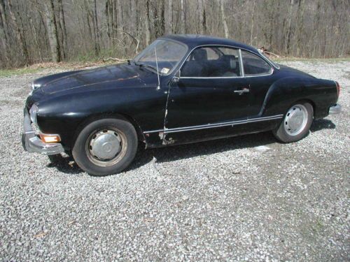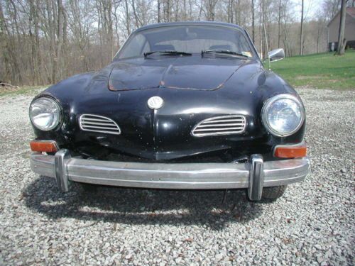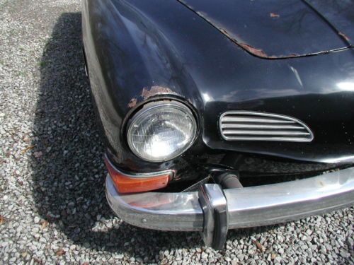 1974 VW Karmonn Ghia for parts or restoration.It has been in stored indoors and has not been on the road since 89. The car is complete.The engine runs and sounds good but the cluch is looked up and can not be driven. It is rusted but was Zebarted when new so it,s not completly gone.