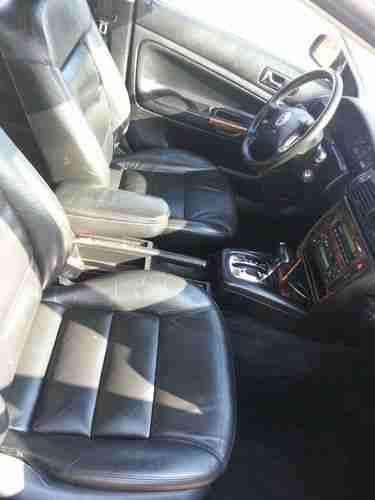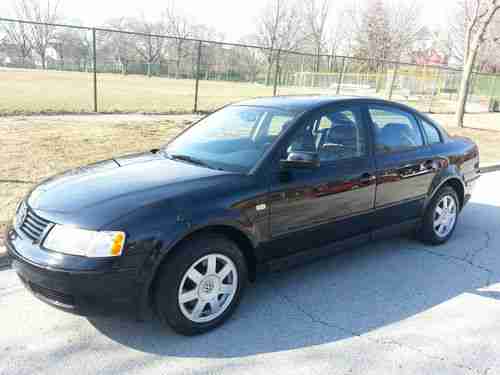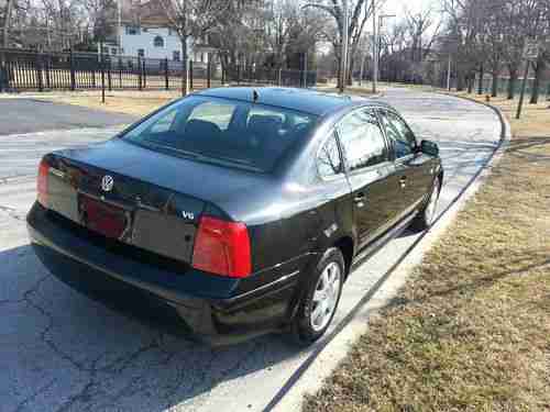 BEAUTIFULLY DETAILED JET BLACK 1999 VW PASSAT GLX WITH FULLY POWERED HEATED LEATHER SEATS AND MOONROOF. VEHICLE ONLY HAS 105XXX MILES. CLEAN CARFAX ONLY ONE OWNER CAR. VEHICLE DRIVES GREAT. SPORTS A 2.8 HIGH POWERED 6 CYLINDER ENGINE AND AUTOMATIC TRANSMISSION WITH TIPTRONIC FEATURE. TIRES ARE ALL MATCHING WITH 4/32 TREAD LIFE LEFT AND BRAKES ALL AROUND HAVE 50% LIFE LEFT. THERE ARE NO CHECK ENGINE OR MALFUNCTION LIGHTS ON. THE INTERIOR IS CLEAN WITH VERY MINIMAL WEAR, GLOVE BOX DOES NOT OPEN AND THERE IS SOME ADHESIVE RESIDUE ON GLOVE BOX. BODY OF VEHICLE IS ALSO IN GREAT CONDITION WITH MINIMAL WEAR FOR AGE AND MILEAGE OF VEHICLE. R/F LOWER ROCKER PANEL HAS MINOR DENT(SEE PICTURE) TRUNK LID HAS SMALL DENT AND SCREW HOLES FOR REAR PLATE MOUNTING ARE DISTORTED. OVERALL VEHICLE IS IN GREAT SHAPE COSMETICALLY AND MECHANICALLY.