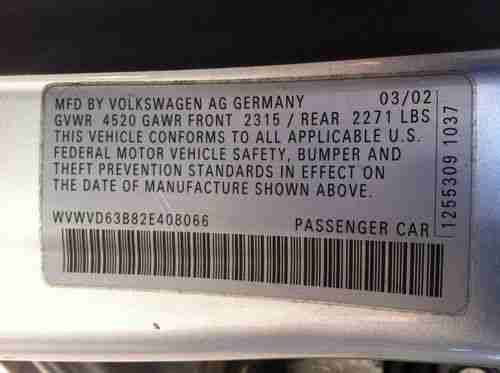 2002 volkswagen passat glx 4 motion sedan 4-door 2.8l