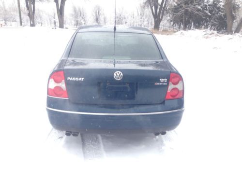 Up for sale 2003 VW Passat W8. Very clean interior and exterior. Passed emissions. It has some surface scratches on the doors and couple small dents on the trunk door. Mechanically it is in perfect shape. Runs smooth and fast. All wheel drive, almost new tires with factory alloy rims. Perfect for snowy days. Fully loaded, all leather interior, heated seats, 6 CD changer with cassette reader, power & memory seats. New oil change and brake pads. It takes 16 mpg in the city 19 on hwy. (delivers 270 h.p. at 6,000 r.p.m. and 273-lb. ft. of torque at 2,750 r.p.m). It is my daily driver so mileage will go up by the time I sell it.