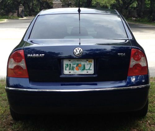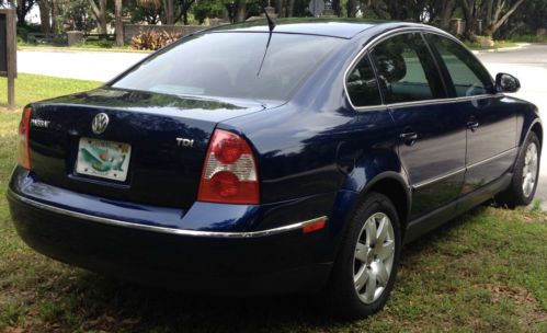 This 2005 Passat TDI GLS diesel is in incredible condition. You will not find a better looking and cared for 05 Passat anywhere!! This car is a one owner car and has every dealer stamp from day one. The timing belt was replaced 20K miles ago. This car needs nothing but a new owner. Great color combination blue over charcoal interior. This car will not disappoint you. Come take a look at it but be prepared to buy it because there is no reason not to. Call or text Rob at 813 600-7324 or Frank at 813 317-6031. More pictures and other TDIs can be seen at alafiaautos.com