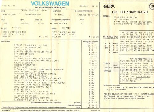 1982 vw rabbit truck ls diesel a/c no rust, no wrecks, runs good lots of extras
