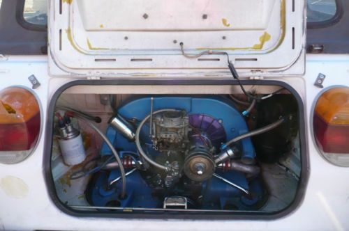 ***********NO RESERVE*********FANTASTIC 1974 VW THING WITH FACTORY HARD TOP, FACTORY SIDE CURTAINS, BAJA CUSTOM WHEELS,CHROME FRONT BUMPER, CHROME BACK BUMPER, CHROME FRONT BRUSH GUARD Super nice California blue plate VW Thing with the only no rust floor pan I have ever seen on a VW Thing period. Also the body is rust free and looks to of never been hit at all from the perfect original metal nose all the way to the back.The doors open and close perfect and it goes down the road straight as can be. My Thing comes with the optional factory hard top and the frame for the soft top which needs new cloth installed, THE PAINT IS NICE DRIVER QUALITY WITH SOME CHIPS AND SCRATES BUT VERY PRESENTABLE THE MOTOR IS A BUILT 1600 THAT HAS SAT FOR SEVERAL YEARS AND COULD USE SOME DIALING IN SUCH AS CARB REBUILT, TUNE UP ETC.THE INTERIOR IS GREAT IN SOME AREAS BUT NEEDS SEAT BACKS RE SKINNED ON FRONT SEATS AND TOP OF BACK SEATS REDONE TOO ( VERY EASY FIX) YOU JUST DONT SEE SUPER STRAIGHT NON BASHED THINGS LIKE THIS ANYMORE AND MINE IS ****NO RESERVE***********PLEASE , PLEASE CALL WITH ANY QUESTIONS BEFORE BIDDING ...................THANK YOU...............(EIGHT ZERO FIVE) TWO ZERO SIX-ONE TWO EIGHT FOUR |