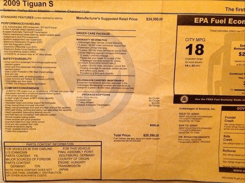 2009 volkswagen tiguan sel sport utility 4-door 2.0l(US $17,499.00)