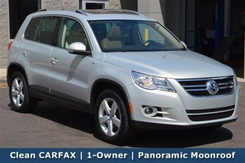 WOLFSBURG Edition Tiguan with Clean CARFAX, 1-Owner and in Excellent condition! Non-smoker and you can tell the previous owner treated it well - look at the leather on the seats - the head liner - it's all clean! And the big PANORAMIC Moonroof lets a lot of summertime light in - and the breeze! TURBOCHARGED 4 cylinder and shiftable automatic means it drives more like a Sedan than an SUV! Even comes with TWO Keys and multiple service records - this one's got it all! Come see it in person!