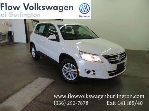 Tiguan S 4Motion, Volkswagen Certified, 6-Speed Automatic with Tiptronic, 8 Speakers, Alloy wheels, and Remote keyless entry. Set down the mouse because this wonderful-looking 2011 Volkswagen Tiguan is the one-owner SUV you''ve been thirsting for. It is nicely equipped with features such as Tiguan S 4Motion, Volkswagen Certified, 6-Speed Automatic with Tiptronic, 8 Speakers, Alloy wheels, and Remote keyless entry. Volkswagen Certified Pre-Owned means you not only get the reassurance of a 2yr/24,000 mile Bumper-to-Bumper Limited Warranty, but also a 112-point inspection/reconditioning, 24/7 roadside assistance, and a complete CARFAX vehicle history report. Consumer Guide named the Tiguan a 2011 Compact Car Best Buy! With just one previous customer, this vehicle has been treated with kid gloves, and it shows. Come see us at the all new Flow Volkswagen of Burlington. Our One Price / Best Price sales process makes buying a pre-owned vehicle easy and fast. All vehicles are certified and come with a warranty. Let us show you why we are the BEST place to shop and buy from in Burlington, NC. Call now...888-202-9570.
