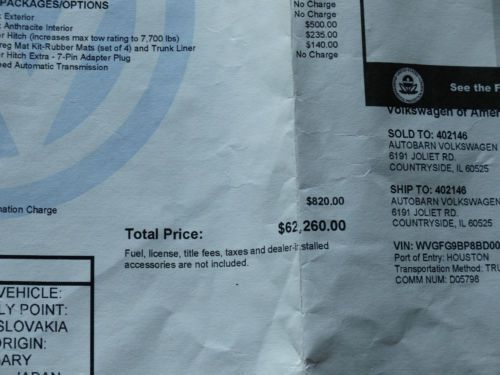 Other options on this vehicle, which window stickered at $62K: Panoramic Roof Cimate Control Navigation Ipod/Iphone interface Standard factory warranty for this certified vehicle is included at any price, but the extended warranty to 115K miles is only at the buy it now price. I am located North of Chicago, but can meet in the area or pick you up at the airport if you fly in. Not many used Touareg hybrids around at the time I am listing this there are no used hybrids on ebay. |