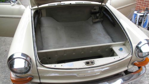 History: The car recently came to Atlanta, Georgia from California. The car is absolutely RUST FREE and the body is super straight. All receipts of the car from the past 3 owners are included and list extensive history which dates back to 1988. Body: The car was recently painted on the exterior (pictures to prove) with original Belgium Beige and Standox Clear Coat. The Standox clear coat comes with a 30 year no fade warranty (from a renowned paint shop in Georgia, D&I Body Shop). Unfortunately, there is 1 dime size chip under the passenger pop out window and small scratch near the passenger window, (only visible to the super OCD). However, willing to get the car touched up. The floor pans and the rest of the body show that the car has been in a very dry environment for its entire life and has no signs of rust, holes, or leaks. The car/window seals are all new which prevents any water from getting in. New: All new glass seals, chrome, paint job, rebuilt transmission. The interior is in very good shape. The Good : the entire interior is super clean and nearly new. The seats are easy to adjust, the panels are in great condition, and the car handles as it should. This cruiser is completely stock - aside from the fuel injection engine being converted to Dual Carbs. It gives the extra power which allows you to shift up while driving up hill and comfortably drive 80 mph on the highway (the speedometer actually read 90!!! but def 10 mph off). Additionally, the VW drove from Atlanta,GA to Chattanooga,TN for the Bug-a-Puluza show and had no issues and handled the highway great. The car is tight, with no shakes, rattles, or stranger noises. The Bad: I haven't had a chance to mess with the turning signals which aren't currently working, although they light up when the lights are on. The odometer doesn't work (But the speedometer does), and the two small dime size chip/scratch in the paint. Willing to answer any additional questions or email any additional photos upon request. Don't let such a rust free and straight Squareback like this pass you by. There is no headache left with this Volkswagen, just pure fun! |