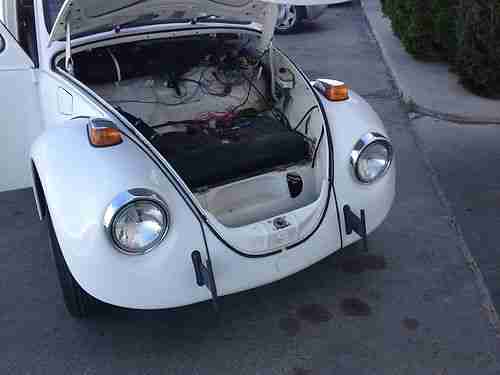 1972 Volkswagen Beetle. Nicely restored. Very reliable daily driver. Everything was gone through and freshened up or replaced. This beetle has a nice clean white paint job with only 1 small ding on the passenger side right above the fender. The ding is about the size of a quarter. All rubber seals on the body and engine have been replaced. The doors line up perfect and the doors shut with that nice solid sound like a brand new beetle would do. Repairs/restoration include- professional paint job, new interior, new window and body rubber, freshly rebuilt 1600 DP engine with almost zero miles. freshly rebuilt transaxle, new drive axles, front disc brakes, complete professional rewiring, drop spindles for a very mild front lowering. good tires. new brakes all the way around. All the lights work. This beetle starts easy, shifts smooth, stops like it should. This vehicle is in great condition and would make an excellent and reliable daily driver. A thick book with paperwork regarding the restoration and repairs is included. Please email with any questions you may have.