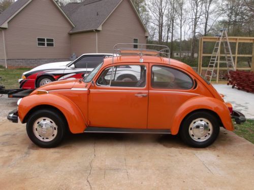 I have for sale a 1974 VW Super Beetle that is restored and everything is new. It has new paint job, new tires, new head light rims, new tail lights, new air filter, new roof rack, new dash, new carpet, seats have been reupholstered, new console, new brakes, new battery, new everything, original bumpers, original side mirror, original tools (jack and sparkplug tool), this VW has always been a South Carolina car and is very nice. The bumpers have very little pitting and where the battery sets had a small rust whole but has been patched because it was small. This is a 4 speed and is very nice it has been restored. If you have any questions call (864) 497-8316. Don't forget to check out my other listings. Thank you.