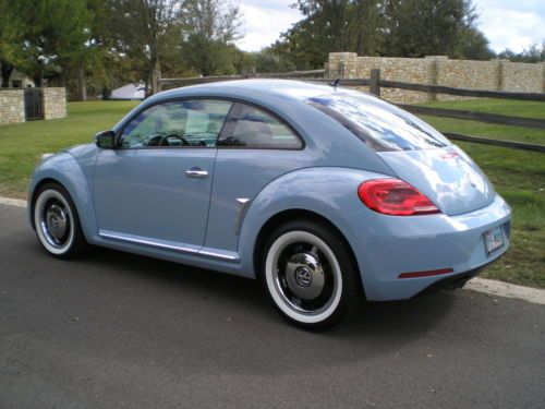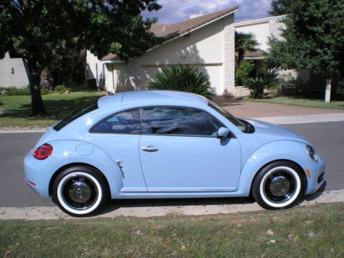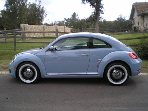 DESCRIPTION: 2012 VOLKSWAGEN BEETLE 2.5L AUTOMATIC. I PURCHASED THIS CAR NEW AT LEWISVILLE VOLKSWAGEN IN THE DALLAS AREA, JUNE 30, 2012 AS A BRAND NEW CAR. YES, CAR IS BLUETOOTH EQUIPPED LOADED WITH: 2.5 LITRE 5-CYLINDER ENGINE; BLUETOOTH; AM/FM/ CD ; HAS TECH PORTS; CRUISE; PWR WINDOWS, DOOR LOCKS, REMOTE KEYLESS; HEATED FRONT SEATS; AIR CONDITIONING; TILT WHEEL; ALLOY WHEELS WITH CHROME TRIM; SPLIT FOLD REAR SEATS; MONSTER MATS INCLUDING CARGO MAT; FIRST AID KIT; BALANCE OF FULL FACTORY WARRANTY. I ADDED THESE RETRO TOUCHES: 1) A SET OF AMERICAN CLASSIC WIDE WHITEWALL RADIAL TIRES. THIS COST $1500.00! 2) RETRO CHROME TRIM, INCLUDING: VOLKSWAGEN SCRIPT; CHROME DOOR HANDLES, CHROME REAR SIDE "AIRSCOOPS" (as a nod to the original rear engined beetles). THIS CAR TURNS HEADS WHEREVER I GO WITH IT! VEHICLE IS LOCATED IN HORSESHOE BAY, TEXAS. THE PREMIERE GOLF RESORT IN THE TEXAS HILL COUNTRY, SITUATED ON LAKE LBJ! JUST ONE EASY HOUR BY CAR WEST OF AUSTIN. COME BUY A CAR AND MAKE A VACATION OF IT! NOTE! DELIVERY IS POSSIBLE AT REASONABLE COST TO NEARBY STATES. FREE DELIVERY TO NEW MEXICO! CALL FOR DETAILS.