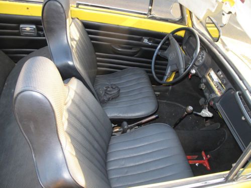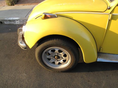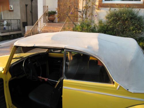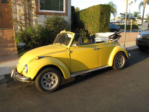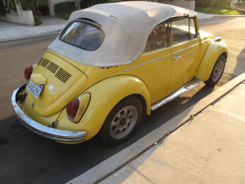 Up for sale is a good running, cute little 1972 Volkswagen convertible. It is bright yellow with black interior, mag wheels and a white convertible top. This is a solid Southern California vehicle. The body is good. It does have a little rust underneath the battery. Other than that she is pretty good. The front seats and carpet are like new. The rear seats have a tear in it. The stitching on the convertible top has let go by the rear window. The motor seems to run good and it is fun to drive. It comes with a CA salvage title. Why? I do not know because I cannot see any reason why it would be salvage. The car is listed locally for sale. We have set a fair reserve price. Anyone with no bidding history on Ebay, please contact me prior to bidding at (310) 990-8628. I have a lot of experience with shipping, and I can help the buyer with moving the car at the buyer's expense. Due to the age of the car, it is being sold "as is" and I encourage you to check it out prior to bidding. Thanks for checking out my auction.
