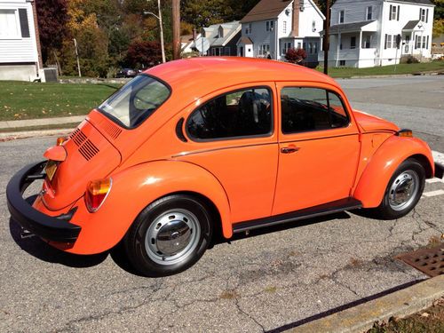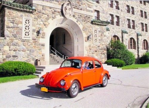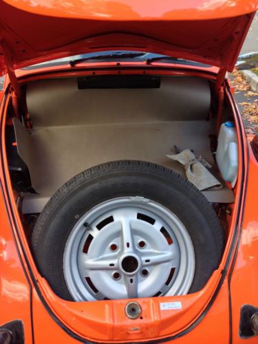 This 1974 Standard Beetle is in excellent condition, inside and out as the pictures show. The body has absolutely no dents or rust. The orange paint is shiny with two tiny scratches that have been touched up. The running boards are perfect The engine has been re-built with less than 5000 miles on it. It has been tuned-up with all new electrical parts. I have all receipts. The interior has new carpet installed and new door cards. The front trunk has a new liner and a new windshield washer system. The car has new chrome door handles with a new key. The heat works great and is strong. The car starts right up and is fun to drive. I have had it for over a year and must make room in the garage for another car.