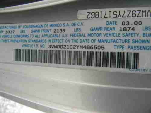THIS IS A VERY NICE LOW MILEAGE 2000 BEETLE OFFERED AT NO RESERVE