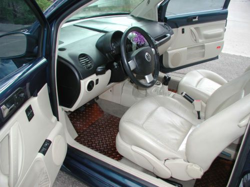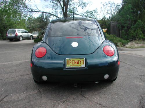 You are bidding on a 2002 New Beetle Turbo 1.8L in a special edition metallic blue paint, alloy wheels and tan leather interior. This car features power brakes, power steering heated seats, electric sunroof tinted windows and Monsoon sound system. Newer Firestone Firehawk tires with less than 5000 miles. Excellent driving condition with no known problems. Always regularly serviced with synthetic fluids and at the VW dealer here in Santa Fe. Low miles and lots of pep! Excellent gas mileage at average 35MPG. Paint has scratches and chips consistent with a twelve year old car. Minor chipping on right rear fender and the front valence has been trimmed. Front seats show some wear. Rear seats are very nice condition. Reserve is set at $4750.