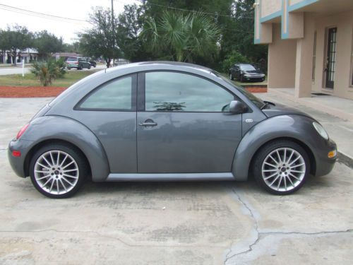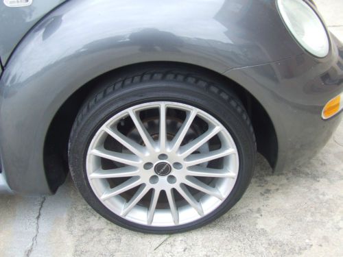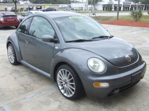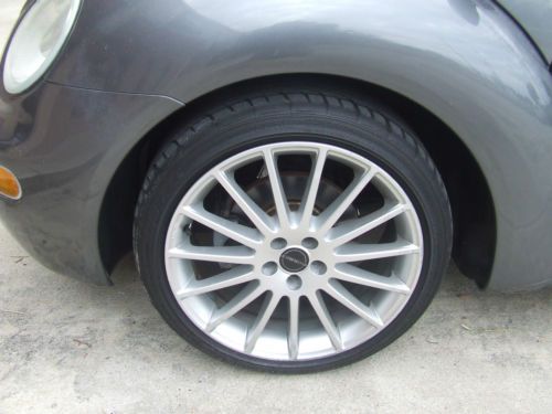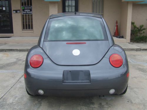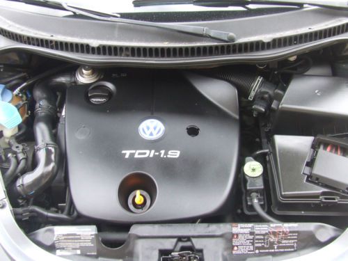 2002 Volkswagen Beetle GLS TDI, 1.9L turbo diesel, automatic transmission, grey with black cloth, 18" Borbet wheels, Dunlop Direzza DZ 101 225/40R18, Clarion CZ207 head unit with remote, aux, and usb port, 124601 miles, books, floor mats. The car runs and drives good. No service lights, recent timing belt, good tires. The interior is clean, all glass work, headliner is tight. The left front inner door panel is broken. The handle is tight and all power window,locks, trunk and fuel release work. The "VW" badge on hood is missing and the antenna mast is missing. Please review photos for condition. Please phone 407 928 4244 with any questions or offers.