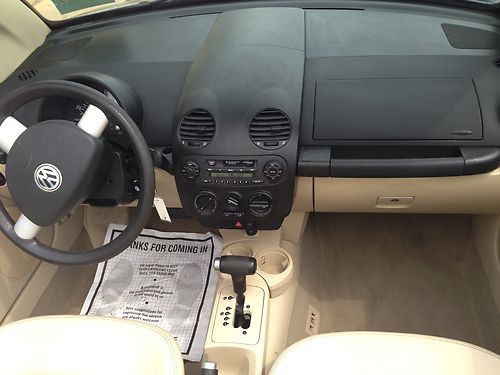 JUST IN TIME FOR THE SUMMER!!! This convertible IS FUN! I hesitate to say cute because the color combination gives it a sexy and sophisticated look. Tan leather interior with black convertible top. Automatic transmission w tipronic which lets you drive like a stick or manual transmission. Automatic top, Cold AC, Six (6) disc changer, tape deck, 10 speakers, power everything! Only 2 owners!!! Previous rental which means regular maintenance. Clean Autocheck report! Autocheck rate is above average compared to other VW Beetles of same year and mileage.
