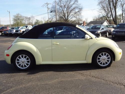 Super clean and low mileage Beetle GLS Convertible with the super fuel efficient 2.0L 4cyl engine and 5spd manual transmission. This car is loaded with options and features including: Cold weather package, Heated front seats, ESP stability control, Monsoon sound system with CD player, Convertible top tonneau cover, Alloy wheels, Power top, Fog lamps, Side impact airbags, and more. A super clean, fully serviced and inspected, low mileage Beetle GLS convertible in a rare and desirable color. Please visit us at our website, www.autolivery.com, for a COMPLETE description of this vehicle, including more pictures, vehicle and warranty info. A link to our website can be found in the "About the Dealer" section found in this ad.