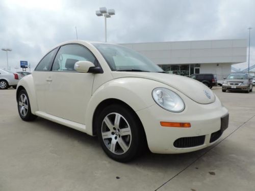 FUEL EFFICIENT 32 MPG Hwy/23 MPG City! Excellent Condition, ONLY 37,560 Miles! Leather, Moonroof, iPod/MP3 Input, CD Player READ MORE!======KEY FEATURES INCLUDE: Leather Seats, Sunroof, iPod/MP3 Input, CD Player, Aluminum Wheels. Keyless Entry, Remote Trunk Release, Heated Mirrors, Electronic Stability Control, Bucket Seats. New Beetle with Harvest Moon Beige exterior and Black interior features a 5 Cylinder Engine with 150 HP at 5000 RPM*. Call Keli Eatmon @ 877-640-7956. ======EXPERTS ARE SAYING: Edmunds.com explains Like other VWs, the Beetle is both fun to drive and comfortable for long trips. The suspension tuning is soft, but it's just about right for most drivers who want a little sport from their Bug.. 4 Star Driver Front Crash Rating. 5 Star Driver Side Crash Rating. Great Gas Mileage: 32 MPG Hwy. ======WHY BUY FROM US: At the Orr Honda in Texarkana, TX we treat the needs of each individual customer. We know that you have high expectations, and as a dealer we enjoy the challenge of meeting and exceeding those expectations each and every time. Allow us to demonstrate our commitment to excellence. Our experienced sales staff is eager to share its knowledge and enthusiasm with you. *Price does not include dealer installed accessories, or TT&L. Prices shown are for in stock vehicles. Cannot be combined with any other offers. At ORR Honda in Texarkana Texas - All of our Pre-owned vehicles are serviced and inspected! We only sell "Top Notch" Cars, Trucks, and SUVs! Tired of car shopping? Give us a call for a unique and special experience! We always carry over 100 used vehicles in stock! Whether you're looking for a Certified Used Honda or a pre-owned truck, view our inventory and you will be impressed!