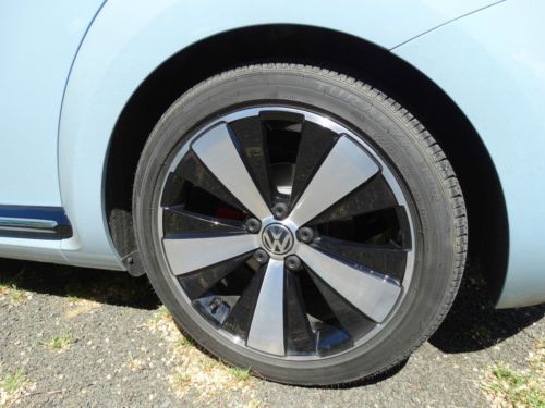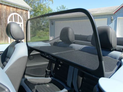 This 2013 “60s Edition” New Beetle convertible is in pristine condition with just under 1800 total miles driven. One of 250 made. 2.0 turbo l-4, 200 hp, 6-speed automatic transmission. All Mod Cons: ESC, ABS, EBD, ASR. Fender premium audio system, heated front seats, power operated convertible roof. Two-tone "60s" leather interior. The car has been kept garaged and professionally detailled by one careful owner. Optional VW factory accessories include first aid kit, VW floor mats, and folding wind deflector which is stored in a holder in the trunk. Manufacturer’s 3-year 36,000 mile warrantee is in effect. The vehicle is pristine underneath with no parking or curb collisions or underbody damage. All paperwork is included: Owner’s manuals, promo materials, window sticker, etc. Views of the interior show the two-tone leather lighter in hue due to a rare sunny day in the region. |