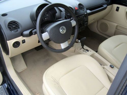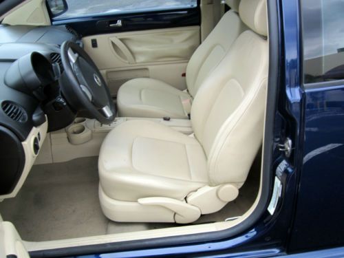 Gorgeous 2005 VW BEETLE GL with just 55k Original Miles, **Never in Snow,Clean AutoCheck Report with a high score of 84,Scroll down to view free history report. Runs fantastic Motor is nice and responsive, no Issues ,Automatic Transmission shifts through all gears correctly,I have been driving this Beetle around town and on Highways,She drives nice and tight,Very well maintained! You will love this one. Royal Blue Exterior has high gloss shine, Cream Leather Interior Interior is clean with the exception of left side of drivers seat, see photos,passenger seat is excellent same with rear seats!