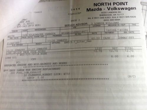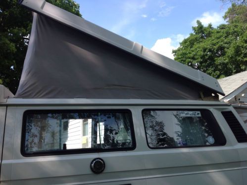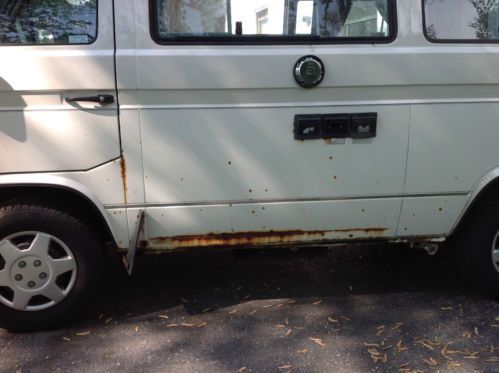I believe the van was purchased through a vehicle finder my wife's father hired around 1990. After my wife's father passed away we took ownership of the van. Up until about a year and a half ago the van was in the garage now it is parked on a concrete pad next to the garage. Yesterday I put the battery back in the van and made sure it had a charge. After sitting all winter I turned the key and she fired right up. I let the van warm up and then I took it for a ride around the block. I noticed that the rear brakes are weak, not the pressure in the peddle but a rubbing noise . I suspect that having set all winter they may have some rust on them a neighbor said this is common when a vehicle sits for awhile. As well I noticed the parking brake would not pull up , I suspect this is due to the same cause as the rear brakes. With this all said I would recommend having the brakes looked at before driving any sort of distance. The van does stop but I would get them fixed or adjusted as needed before travel. After my trip around the block I let the van sit in the driveway for about 20 minutes and the radiator fan came on and there were no temp issues. My wife had said that some years ago her father had the engine replaced by the local VW dealership I don't know when, but I have a stack of dealership invoices which come with the van. My wife's father always took the van to the dealership when work was needed. It shifts good, about a year ago we had some hoses that had to do with the steering replaced and the clutch replaced. The things I know are not working due to mechanical failure or my lack of knowledge of the vehicle are as follows. Air conditioner, when I turn it on the fan comes on but no cold air. The rear wiper and sprayer. Passenger side window, electric, does not go down but drivers side does. The speedometer dash light bulb is out. I noticed last year when I taking the van out for a drive the tack stopped working, I tapped on the dash an it started working again. Loose wire maybe? The body. There is rust on the drivers side lower panel that is the worst part. I poked it with a screwdriver and it was solid, I was told to sand it and prime it and then spray some white on it but I thought as we are selling the van it would be better if the new owner knew where the rust was so it could be taken care of properly to the new owners' desire. As well the paint is starting to bubble a little around some of the windows. The bubbles are about the size of a dime. Then there are some pin sized rust spots on some of the panels. It does not seem as the rust has broken through the metal anywhere. The pictures I added tell a better estimate as to the rust. The arms that go the the wheels in the rear have rust on them but I'm told that is surface rust. The black factory undercoating is still intact all over the floor pan. I don't see any issues there. The plastic bumpers do have cracks in them. As far as the fridge, and stove I do not know if they work or not as we don't even know how to turn them on. One note, the underside of the lid on the stove still has the blue scratch resistant film which has never peeled off which leads me to think the stove was never used. All the tables are there as well as curtains. The front and rear seats have no tears in them I would rate them as good condition. The rear lower bed cushion needs to be cleaned but no tears. The upper bed part of the camper looks to never have been used. The camper top does not leak. The fabric has no tears or rips and no mold. I can see no cracks in the fiberglass top, my wife does not ever recall the camper top ever being used. No cracks or chips in the glass that I can see. My wife and I travel quite a bit and the van is not used, she said it is time to find it a good home so someone can continue to enjoy it as much as her parents did. If there are any questions please let me know, please be specific, so I can give as complete answer as possible. We are not offering delivery of his vehicle, it is up to the purchaser to provide transportation from my location to theirs. We require a $500.00 non-refundable deposit on the vehicle within 24 hours. I only say this as I only want serious buyers bidding. Within 48 hours full payment must be made. I will provide an address for the payment to be sent, via certified bank check. I don't recommend sending cash for obvious reasons. As well the new owner may pay cash in person or certified bank check within the 48 hour time frame. Should new owner pay in person with certified bank check, the vehicle and title will not be released until all funds have cleared my bank. I would like the vehicle removed from our location within seven days of purchase. So with that said please understand I have described the vehicle to the best of my knowledge as I know very little about these vehicles. There is no warranty given or implied with the sale of this vehicle. Thanks for looking at our vehicle. Regards, Wayne E bay would not let me enter the vin so here it is WV2ZB0258KHO14471 On Jun-02-14 at 11:37:02 PDT, seller added the following information: I have been asked two questions about the van. The first question is, would I disclose the reserve price of the van, in keeping within the spirit of the auction process I will not be disclosing the reserve price, sorry. The second question was, if the engine was replaced and when. As I stated in our description my wife had thought the engine had been replaced at sometime. Upon inspection of the paperwork I have, I did find the invoice from a VW dealership for an engine replacement. I posted pictures of the invoice. The engine was replaced in 1999. With that said I have no way of knowing the miles put on it since then. I can only speak to my having driven the van locally. Due to the engine having been replaced, I am not implying that the engine is in new condition. I am not making any claims to the condition of the engine other than what I have listed in my description. I have