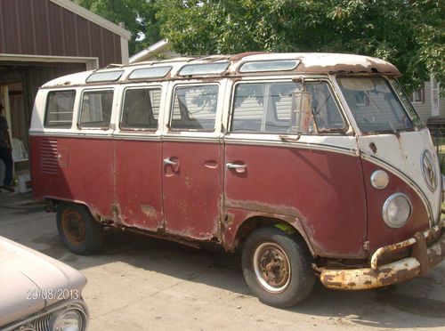 You are bidding on a 1961 VW 21 Window Bus. This just taken out of 40 years of storage. This is mostly complete. The engine turns free. It will require patch panels and a complete restoration. These buses we all know are very rare and very hard to come by. The bus will come with a Clear Indiana up to date title. I will end the auction on a buy it now for the right offer.