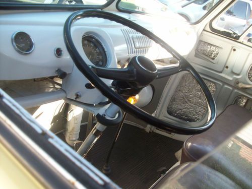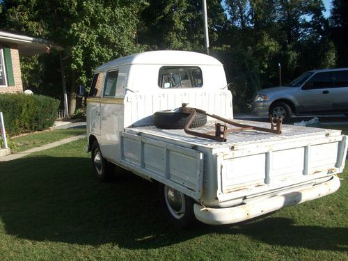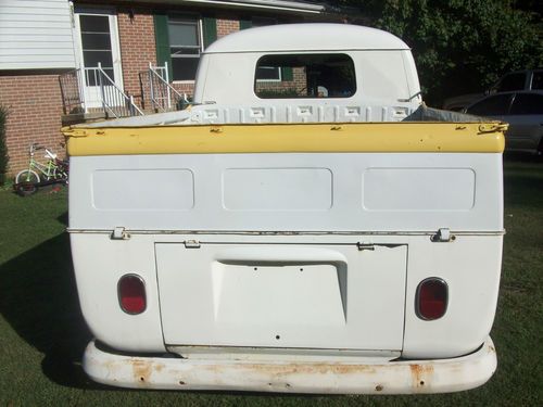 YOUR BIDDING ON A 1963 VOLKSWAGEN VANAGO DOUBLE CAB TRUCK,THIS TRUCK HAS BEEN SETTING FOR THE PAST 10 YEARS,IT RUNS AND DRIVES,BUT NEEDS WORK,VERY SOLID BODY WITH SOME RUST,GOOD GLASS IN THE WHOLE BUS,ALL DOORS OPEN AND CLOSE NICE,ALL WINDOWS OPEN AN CLOSE,HAS SOME RUST IN FLOOR BOARD,SEE THE PICTURES,ALOT OF EXTRA PARTS,SPARE MOTOR WITH DUEL CARBS,TOOLS,THE GAS TANK ISNT HOOKED UP,IT HAS BEEN DRAINED,AS YOU CAN SEE,IT HAS A LITTLE GAS TANK HOOKED UP TO YARD MOVE IT,THE BUMPERS ARE NOS THAT HAS BEEN STORED UP,SO THE WINNING BIDDER WILL HAVE TO TOW IT,I CAN HELP ON THE SHIPPING,HAVE A CLEAN TITLE IN HAND,THIS IS A NO RESERVE AUCTION,ANYONE IS WELCOMED TO COME LOOK AT IT,WINNING BIDDER PAYS A 1000 DEPOSIT WITHIN 24 HOURS OF AUCTION END AND BALANCE PAID 7 DAYS AFTER AUCTION ENDS.ANY QUESTIONS ASK NOW