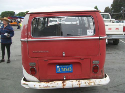 This sale is for a used, standard 'walk-thru' 1970 VOLKSWAGEN TRANSPORTER. I'm listing for a friend, who has owned it for some time....all 'SERVICE RECORDS' available for the last 12 years. Overall condition is good, nothing fancy....the body has a few small dents, the largest is on the right rear corner. The front end (nose) is good with no major dents, drivers door & passenger door and the sliding door open and close with ease. All glass is in good condition. Drivers side window rolls up & down with no problems, however the passenger side window does not, the handle just spins...so I'm guessing the spline is stripped. All vent windows work. Rear hatch and engine deck lid open and close very well. Both are in good, dent free condition. Both hinges on deck lid are sound, and original spring holds the deck lid up. Rear hatch stays up when opened. All lights work, including turn signals and the back-up lights. The motor is a stock 1500 single port. I'm not sure how many miles are actually on this motor, for the sake of listing this ad, I just entered 75.000.0 (you never know with a Volkswagen), however it runs very smooth, quiet and still has plenty of power. 12 volt system. Drum brakes all around, in good condition. The interior is fair, original headliner....front seats are comfortable and come with seat belts, both middle and rear seats are missing, although the seat belts are still present and attached to the floor. Front floor has rust on both sides...the drivers side will eventually need repair. Although this Volkswagen has spent most of it's 'life' in the Santa Cruz, California area, it's very solid, as with just about all vintage Volkswagen's, it has it's share of rust (please see pictures). The cargo floor, has minor rust, no rot out...the frame, jack ports, dog legs all very solid. The top is rust /dent free, drip rails good....Comes with original aluminum belt trim, however the piece above the gas door is missing. All doors, rear hatch and engine lid lock. Both front & rear bumpers firmly attached. Original 15" steel rims, with hub caps...tires are fair, but I would replace. Comes with spare tire and original cover... inside left rear corner This Volkswagen is currently registered and comes with a clear title.
