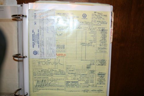 First, let me say that I am listing this bus for sale reluctantly. Not only because this bus was bought brand new the day I was born, but because it’s so special. I acquired this bus only a few months ago in trade on my Porsche 356. I have owned over 30 VW’s including very rare and unique models, but in all my days with Volkswagens never seen a vehicle with a level of documentation like this. And I’m not talking about having a “date correct” owner’s manual and a mail order birth certificate from VW. Anyone can get one of those. What I’m talking about here is special. I’m talking about an over-the-top 40 year accumulation of receipts and documents that cannot be gained in any other way except from day 1. In fact, it started before the Bus was even bought new. First let’s start with this: The original VW brochure she (the original owner Barbara), got while she was “in the market” for a bus. She kept it! Then it goes from there: The original sales contract from the dealership, original window sticker, original PAPER dealership plates, temporary registration plates and window decal, original owners manual, warranty paperwork, etc., etc.; All of this alone is enough to make this Bus special. But that’s only the tip of the iceberg. The original owner kept decades of every single receipt and paper. Over $15,000 dollars of receipts and meticulously documented expenses are here. Have you ever known someone that bought a warranty on everything and kept everything? Someone so strict they followed their vehicle recommended maintenance religiously? Well this lady was her! There are notes documenting “break in periods” and “first scheduled maintenance” visits, it goes on and on. When she bought new tires, she not only kept the receipt, (all neatly stapled with the warranty paperwork), but she noted and diagramed when the tires were rotated!! No kidding. And there are several of these sketches, see the pics! And if you think this is a little “eccentric” then how about writing down every time she got gas!! Including date, mileage, and fuel economy! Who does this??? There is even a hand written letter to the dealership to request compensation for a $7 flasher relay she felt was covered under warranty but had to pay for. This lady was thorough! Anyone who knows investment value of a vintage vehicle knows what having a level of documentation such as this means. Even if the Bus itself did not exist anymore, this would be something special. But it does. This bus
