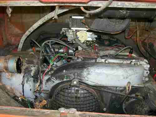 Next project was the engine. Problem I ran into here was I bought a house, and my mobile house lost its attention. I put on a new starter and got it cranking, but that is as far as I took it. As you can see in the picture, the engine looks good with the exception of the ignition coil which looks to have blown and contributed to the Bus going into hibernation. So, obviously the bus is not running. It does turn over without a problem and crank strongly.