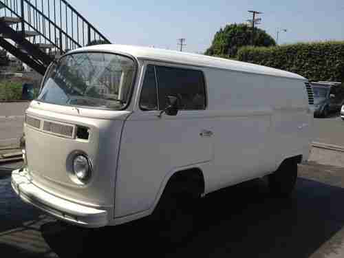 Up for sale is my 1974 Volkswagen Transport Cargo van. I bought the vehicle 3 years ago from the original owner in santa clarita. So cal car its entire life; and began to restore it. I got about 85% done including media blasted the exterior. Repaired the most minimal of rust, Primer, blocked, wet sand and painted in a off white ppg single stage. The the two front seats and door panels have been custom upholstered in a navy blue with white piping/stitching. The engine war removed, engine bay painted and motor top end rebuilt, carbs cleaned and tuned. Front brakes are rebuilt, wheels are powder coated flat black. Glass and door seals are all brand new. Tires are brand new with less than 5 miles on them. Purchased and installed them 3 months ago. Starts right away, clutch has plenty of life left in it.