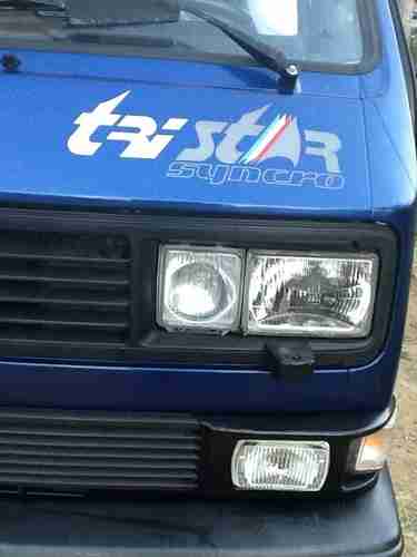 1989 tristar Syncro for sale I've got my Syncro tristar on the block for sale . It has front and rear lockers and center decoupler. It has 16 inch trailing arms and 16 inch wheels and wheel arches. Has been regeared as a 16 for torque. Front suspension has been upgraded to burley upper control arms and Porsche cv and front axles less than 1500 miles ago. The truck has nice vw truck mirrors and good window rubber, a vw leather steering wheel, shift boot and knob. It has the desirable antenna windshield, and rear window defrost. The wheels are compomotive, and tires have the same milage as the axles. Te smooth aluminum sideboards are awesome, as they come off easily(only when you want them to). The truck has a tiico conversion and is smogged and licensed and titled in California. I has front and rear heaters and interior is in good condition. Also it has the projektzwo fog lights, and vanagon muffler(it comes with the truck, but is not installed for smog purposes) the truck has 149 kilometers and is very clean and straight. Also has h4 headlights .and a full tristar plush interior