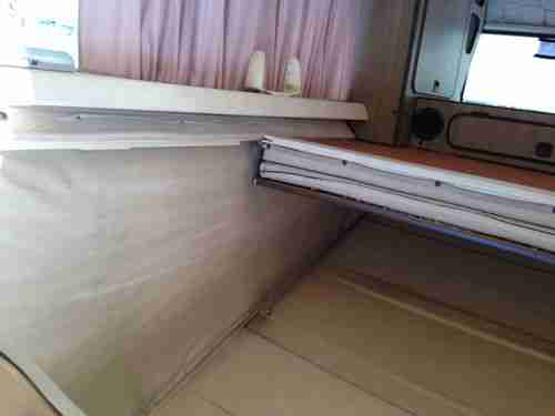 Good: Engine (previous owner says it was rebuilt 25K ago, it runs great), Transmission shifts smoothly & all gears work, Newer Pioneer CD Player, Drives Great, Tires are about 50% life, No Problem going for a road trip and using as is. Comes with a brand new pop-top tent that needs to be installed.