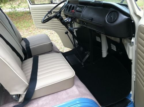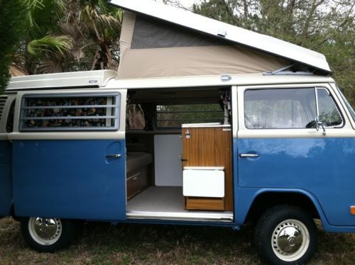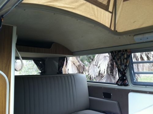 Ground up restoration with over 400 man hours. This is one of the nicest campers you'll find on the market today. Restoration was done with attention to detail with exception to a few pain drips not noticeable unless you are looking for them. The interior coach work is beautiful and the upgrade to a 914 motor makes this camper super reliable and a little more special. Seller is only selling because he is simply not going to use or enjoy this camper they way it should be. Originally from California, this bus began its restoration with minimal rust all of which was repaired. The body is straight and the interior is complete. Brand new two tone base coat and clear coat paint job with quality Dupont products inside and out, rims, bumpers, etc. The under-body has been sealed with rust preventative undercoating. The upholstery includes new foam and features pleated tan leather-like vinyl with accenting ivory piping. All original furniture has been restored better than new including the ice box and sink. The Dashboard is excellent with no cracks and a new special rubber / plastic paint. The motor is a 1.8 freshly rebuilt from a Porsche 914 (this is a common upgrade and gives the bus some more power and reliability). Electronic Ignition was also installed along with a Cylinder Head Temp Gauge to make sure the motor was running propoerly and the operator can monitor its vitals as it's air cooled. Almost every square inch of the camper has been tested and either; replaced, repaired or refurbished. Most of the original OEM German VW parts were in great condition and were reused. New Components Used During Restoration Include: Interior: Front Floor Mats Kick Panels Door Panels Sun-visors & Clips Carpet Upholstery Curtains Pop Top Canvas Stereo Sink Faucet (new part not shown in pictures) Exterior: All doors Pop Top Window Rubber Side Mirrors Lighting - Housings & Lenses Hub Caps VW Emblems Radial Tires Mechanical: 914 Engine Brakes Carburetor Battery Shocks Shift and Brakes Cables Misc & Tranny seals and Components If you have an questions please don't hesitate to call 914-282-0714 On Dec-26-13 at 11:21:23 PST, seller added the following information: We also have brand new unused rear hatch screens and side door screens