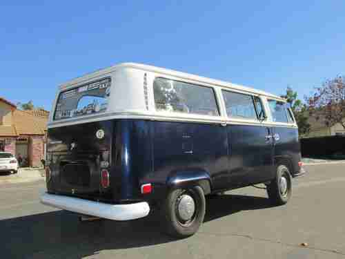 Excellent brakes (front disc, 1971), good engine rebuilt 3000 miles ago, new valves, new piston kit 1641cc, extra oil sump1.5 qt for better cooling, H30/31 carb, new starter... Body in overhall excellent condition , some rust holes on the front floor and here and there but nothing serious. It was nicely repainted on the outside some 15 years ago, dark metallic blue and white, the paint is not flawless but the bus is looking really good and is and will be a big head turner.